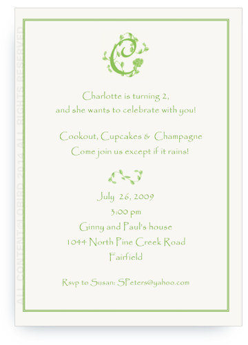Host your next event using our wonderful invitations. They are beautifully printed on premium white cards and include envelopes. Matching place cards, menu cards, gift tags and thank you cards are also available.