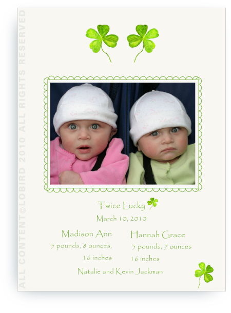 Introducing Lobird baby photo announcements. What a perfectly personal way to introduce your new little ones. All our photo cards are printed on beautiful premium paper and accommodate your favorite landscape, portrait, or square photos, sizes 3 x 3” or wallet 2.5 x 3.5”. Adhesive included. (Email info@lobird.com for digital photo card options)