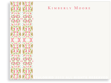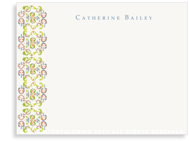 Our personalized stationery is a wonderful little indulgence for you or the perfect gift for others. All our note cards are printed on beautiful premium weight cards and come elegantly wrapped in ribbon with a charm that matches the design. Sets of 50 or more are packaged in our classic Lobird box.